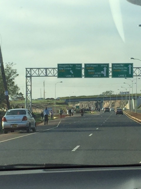 Little did I know that the Southern By-pass had been completed. It’s been part of the scenery for a long time providing jobs for Kenyans with the Chinese winning the contract and overseeing the job. In times past we’ve been on a very short completed section of it, but today Julius, the driver from our guest house, assures me that now that it’s completed, we can accomplish the journey from guest house to the airport in perhaps only one hour instead of the usual two or three at this time of day.